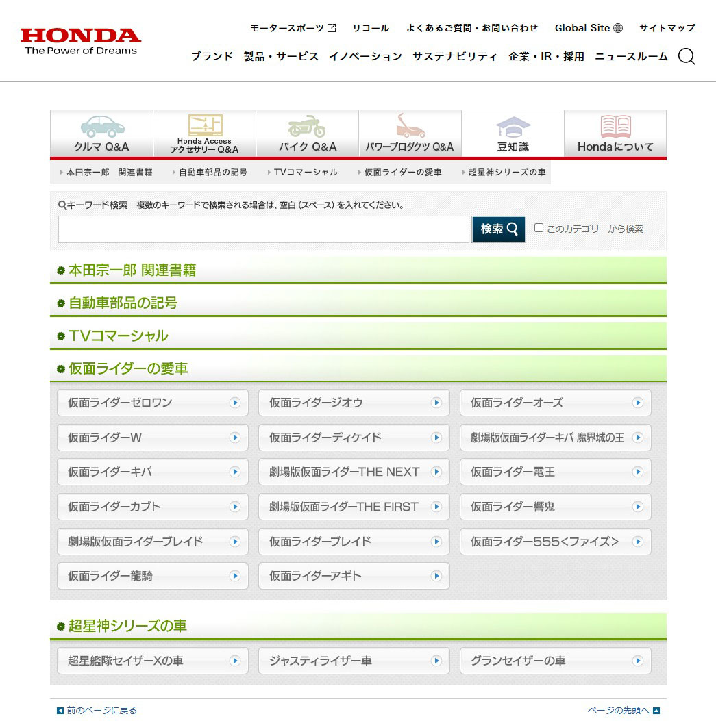 バイクのホンダ公式サイトに「仮面ライダー」の愛車が調べられると話題に、「初めて知った」「完全に好きな人が作ってる」と反響