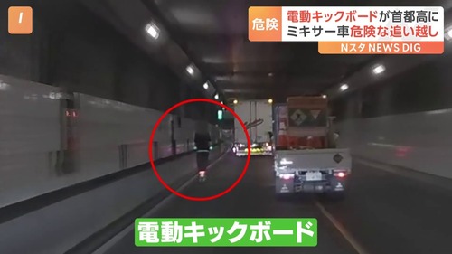 「ウソだろー!」なんと、高速道路に電動キックボードが。