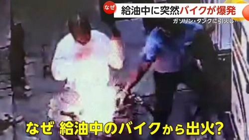 出火原因はスマホ着信の電磁波か 給油中バイクのタンクが突然爆発…火を噴く車体を移動させ消火 インドインドのガソリンスタンドで11日、給油中のバイクが炎上する事故が発生した。男性は燃え続けるバイクを押して移動させ、従業員が消火器で火を消し、けが人はいなかった。スマートフォンの電磁波から引火し、火災が発生したという。