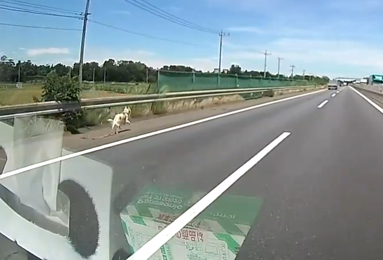 R6.6.29に埼玉県 狭山PAから行方不明になり高速道路を ハーネス、リード付きのまま 走っていた 白い中型犬