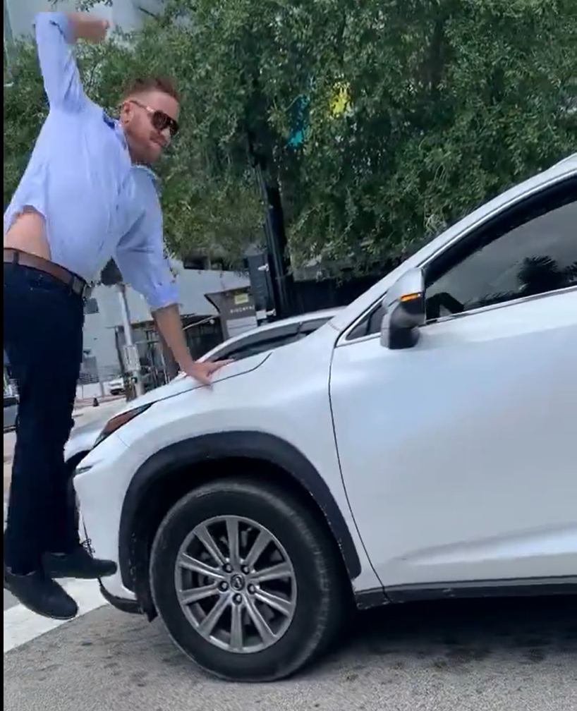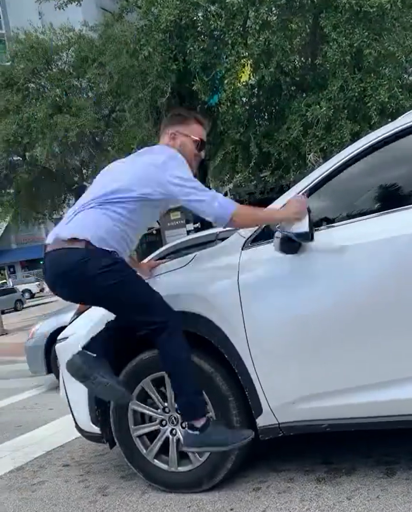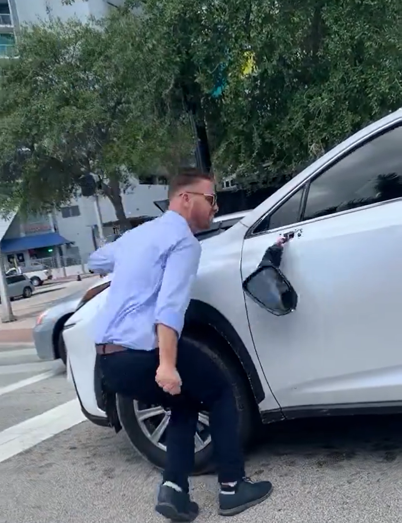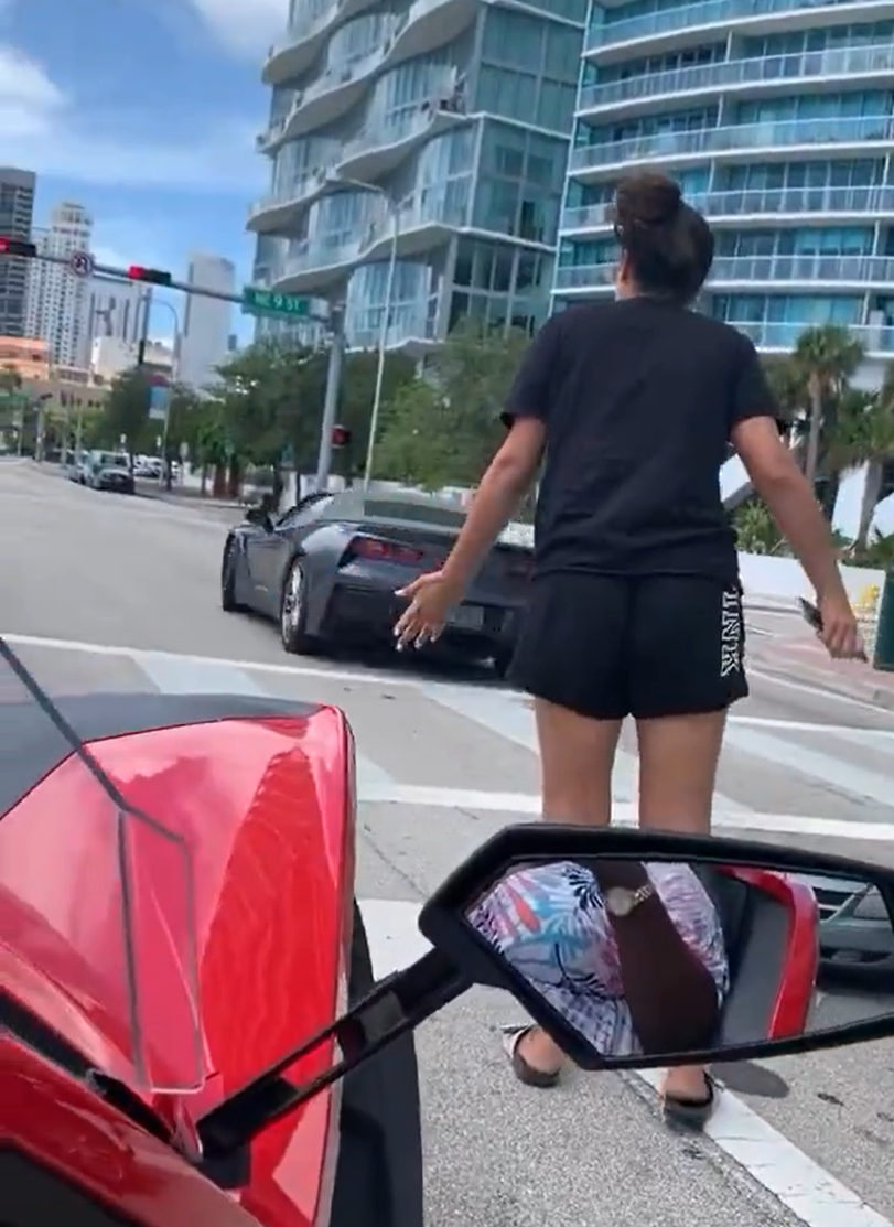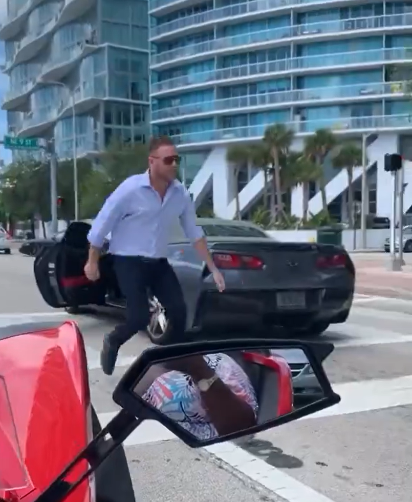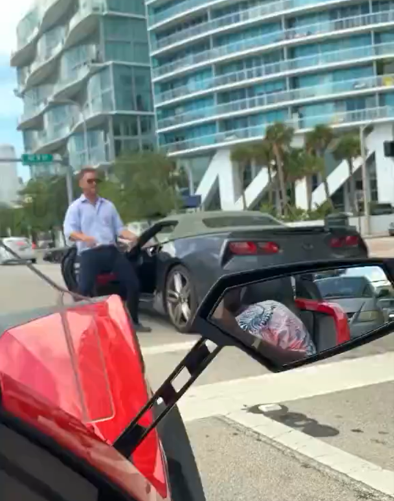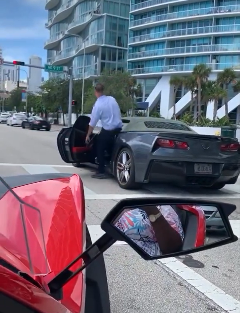 【動画】交通トラブルか⁈ コルベットの男性が見事な“空手チョップ”で後続車のサイドミラーを破壊