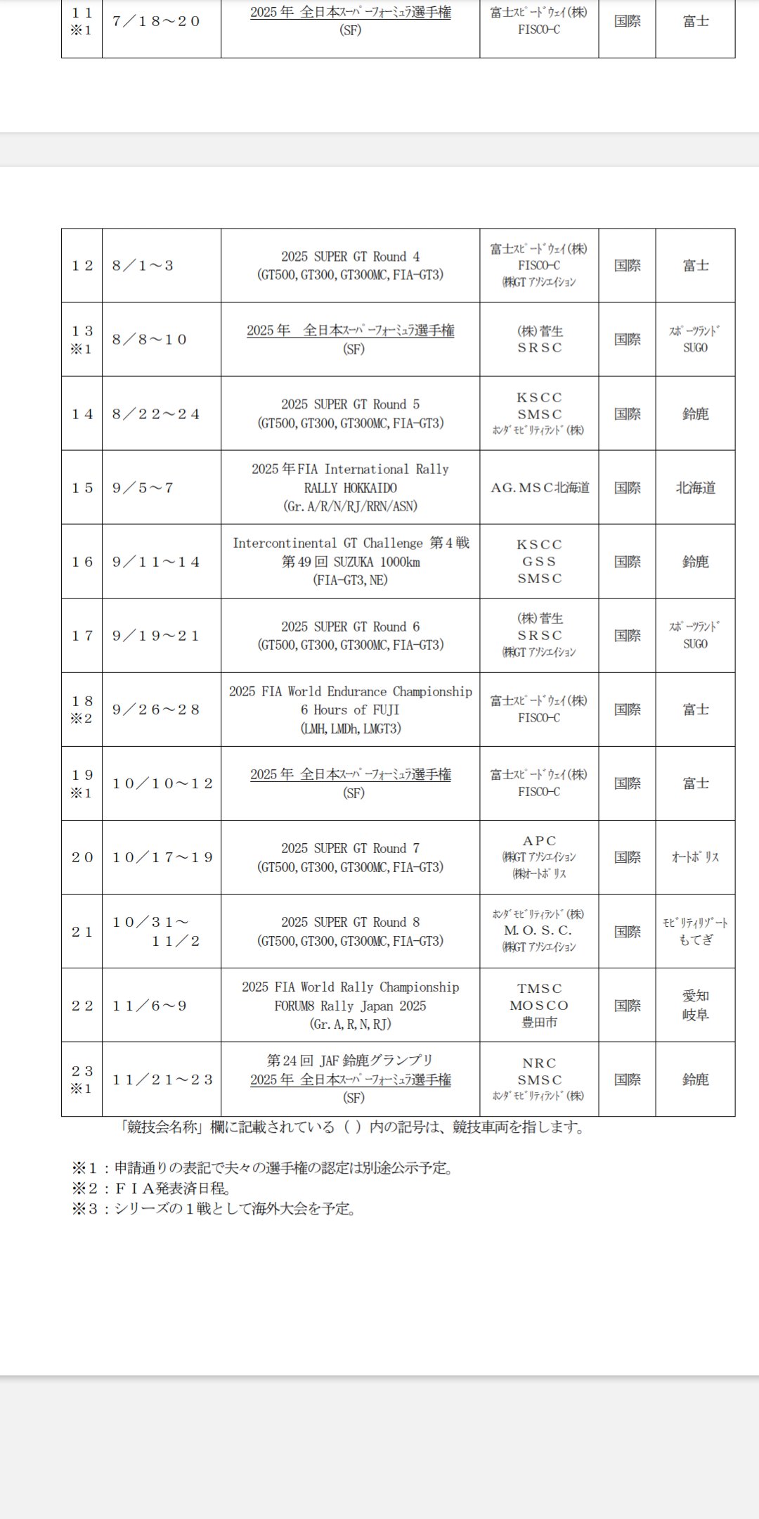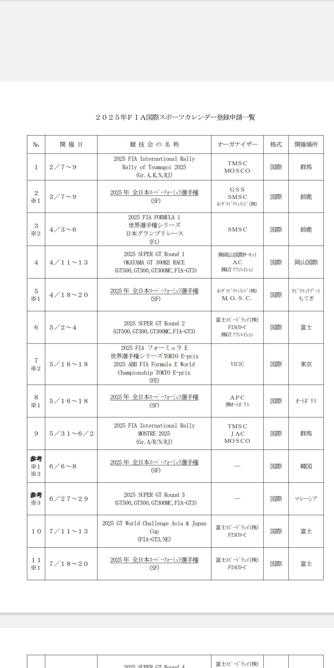 スーパーフォーミュラ、来季は韓国ラウンド実施予定。2025年FIA登録申請一覧で明らかに#SFormula #スーパーフォーミュラhttps://t.co/xV1vT2uJdA
