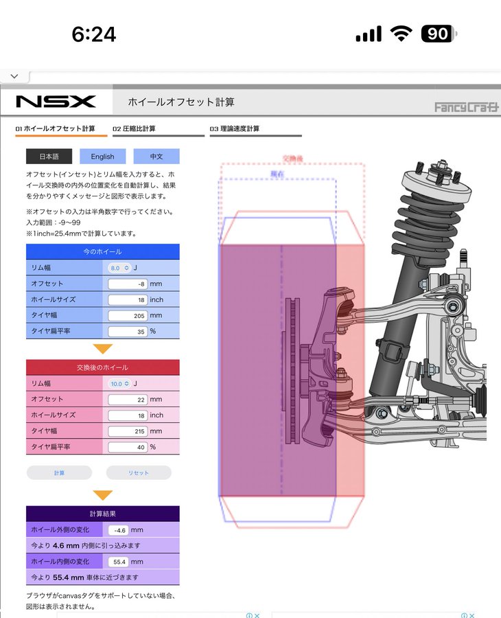 【朗報】ホイールオフセットを計算できるサイトが神アプデ! 交換前後のタイヤの形状まで確認できるようになる