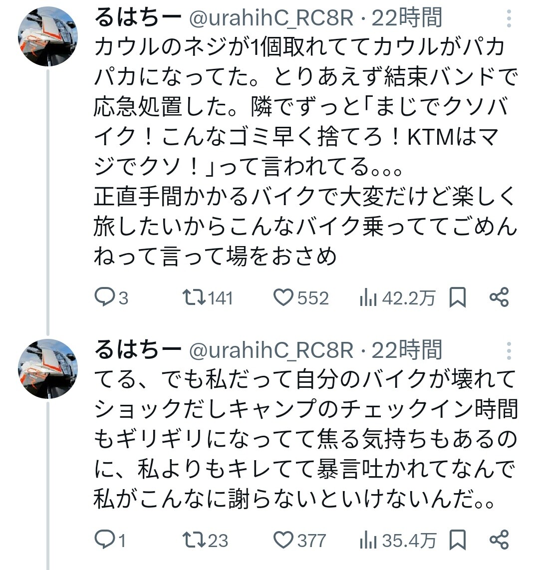 【悲報】女ライダーさん、バイク旅行中にバイクが壊れる→旦那にキレられ離婚を検討 2024/8/18 バイク速報 1: 2024/08/18(日) 13:24:07.442 ID:dYt90VWpM 悲しい😭 続きを読む Source: バイク速報