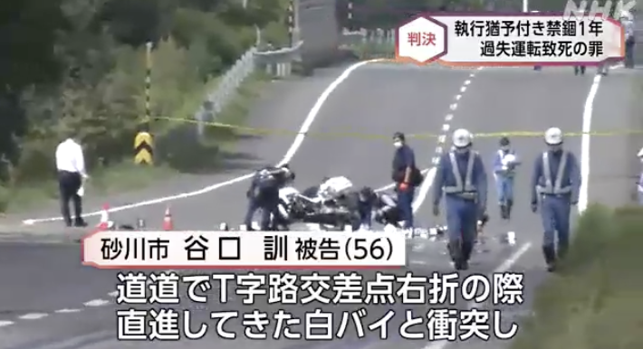 北海道・白バイ隊員死亡事故、執行猶予付き有罪判決に