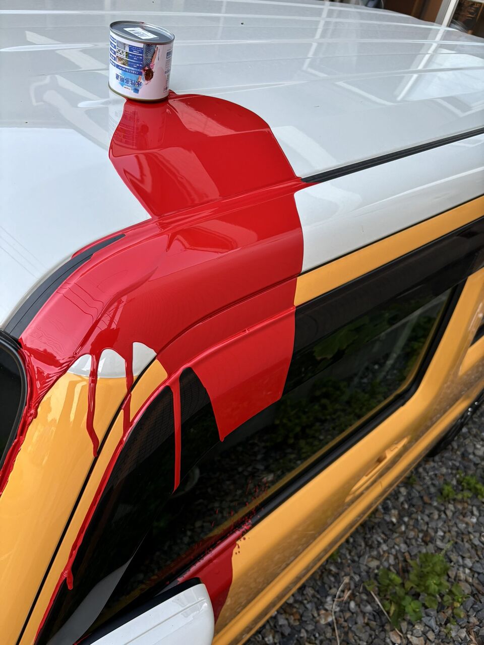 めちゃくちゃ可哀想なんだけど、このカラーの車にこの色のペンキをこう置くってのが、デザインとしては秀逸なんだよな