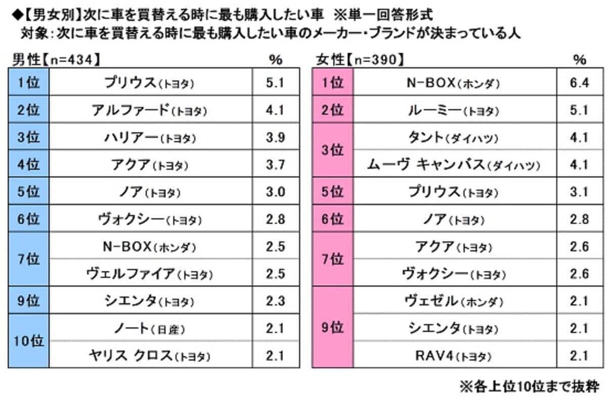ソニー損害保険は、自家用車を所有し、月に1回以上車を運転する18~59歳を対象に「全国カーライフ実態調査」を実施し、その結果を発表しました。調査期間は、7月12~16日です。1位:プリウス(トヨタ)
