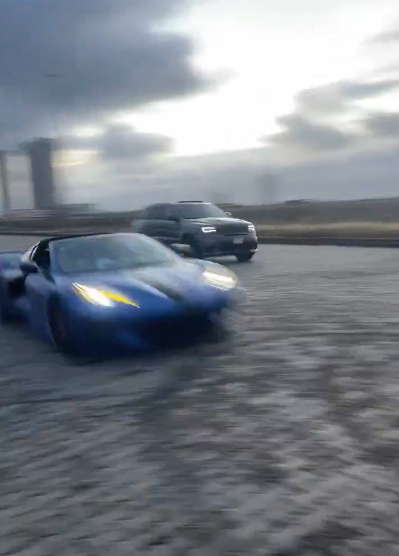 Race goes wrong after a Corvette hit a Dodge Challenger that drove into the road 😬pic.twitter.com/v7Q3ZWpJ1q