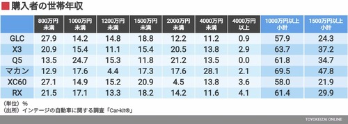 高級車の購入層の世帯年収が判明 2024/9/30 ゆめ痛 -NEWS ALERT- 1:名無しさん募集中。。。:2024/09/24(火) 15:03:52.58 ID:0.net 一番多い年収層で比較 世帯年収800万未満 ベンツ BMW ボルボ レクサス 世帯年収800-1000万未満 アウディ 世帯年収2000-4000万未満 ポルシェ 続きを読む Source: ゆめ痛 -NEWS ALERT-