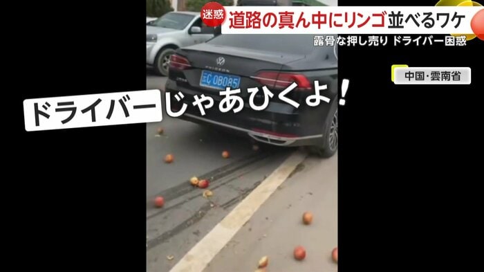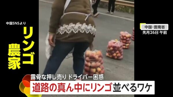 現地メディアなどによると、農家の人たちは車を運転する人たちに「リンゴを強引に売りつけたかったから」道路に置いたのだという。