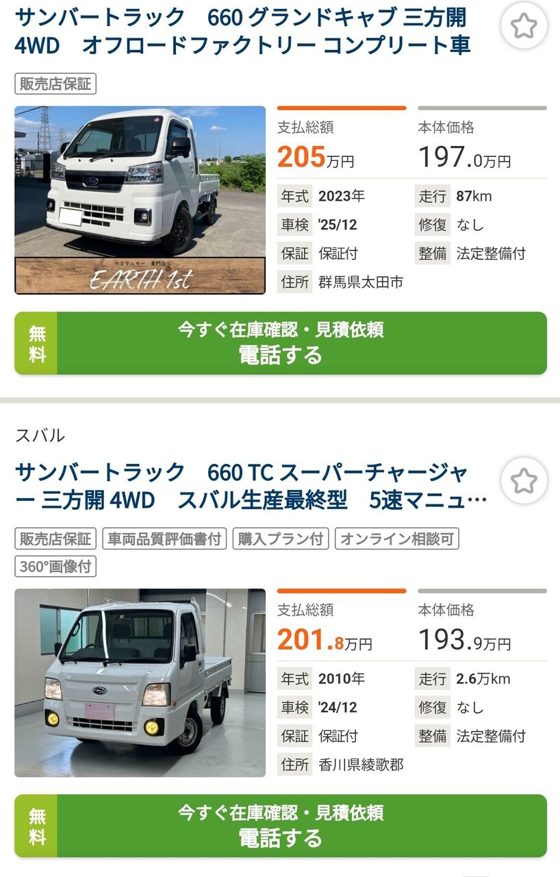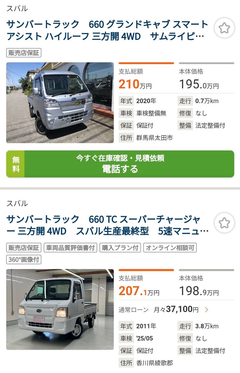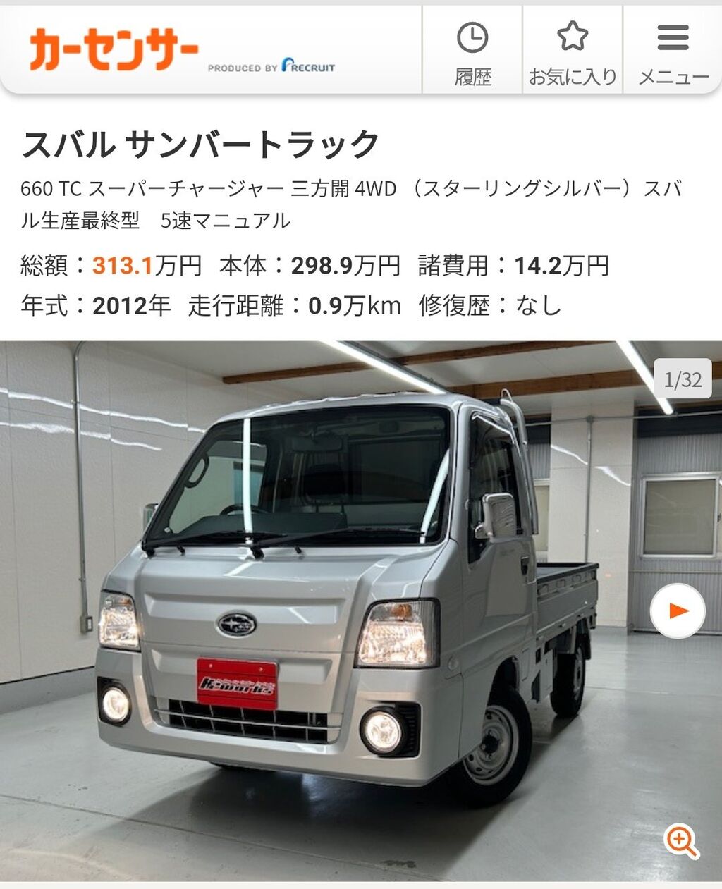 サンバーが300万・・・最近の豪華装備の軽自動車買えちゃうな