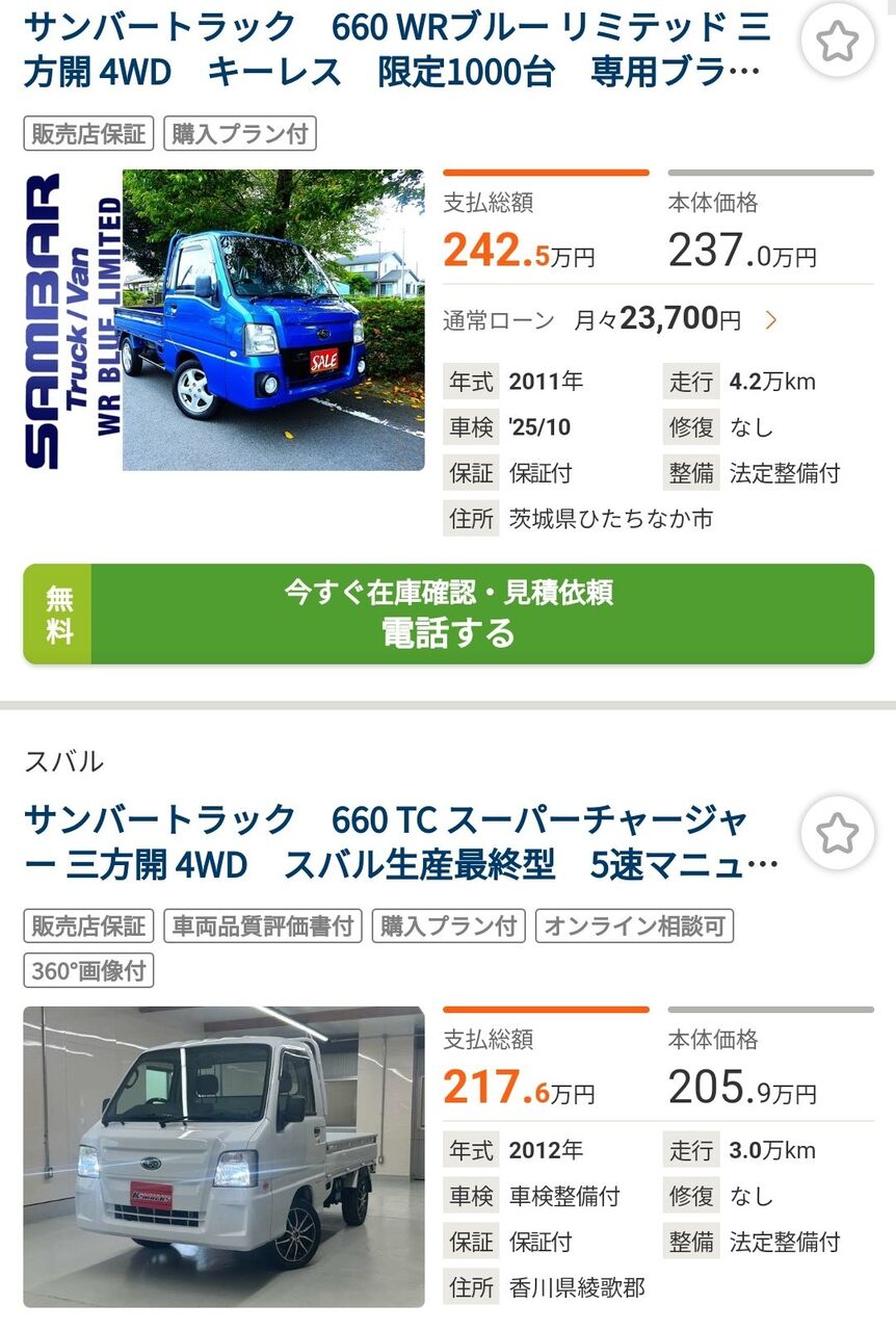 コラ画像とかちゃうんwと、思ってカーセンサー高い順に並べたらマジだった……軽トラだよ……?(ドン引き) https://t.co/CPoKoo0Mdw pic.twitter.com/3RjvFQygpS