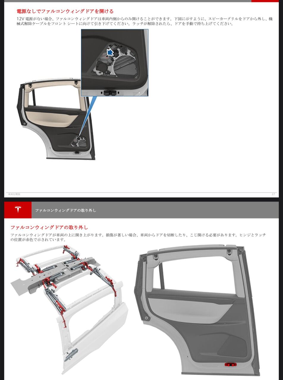 モデルX、電源喪失時のドアの開け方が「まずスピーカーを外します」はマニュアルがあっても厳しいと思う。 pic.twitter.com/NSvtTLmPwA