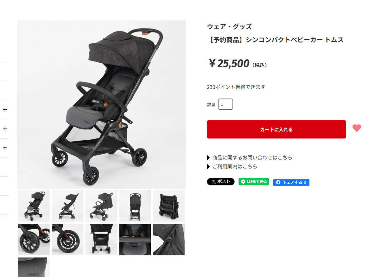 “『シンコンパクトベビーカー・トムス』の価格は2万5500円(税込)”