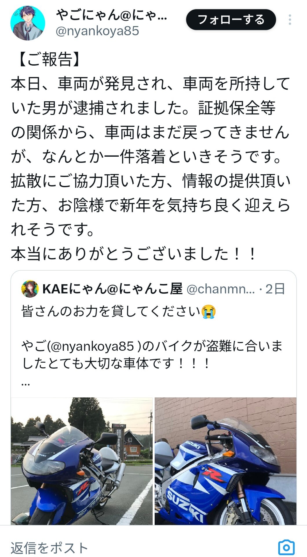 窃盗容疑で逮捕されたのは浜松市中央区雄踏町山崎に住む自称・会社員の男(39)で、2024年12月30日頃、愛知県新城市にある住宅の駐車場から大型バイク(時価70万円相当)を盗んだ疑いです。