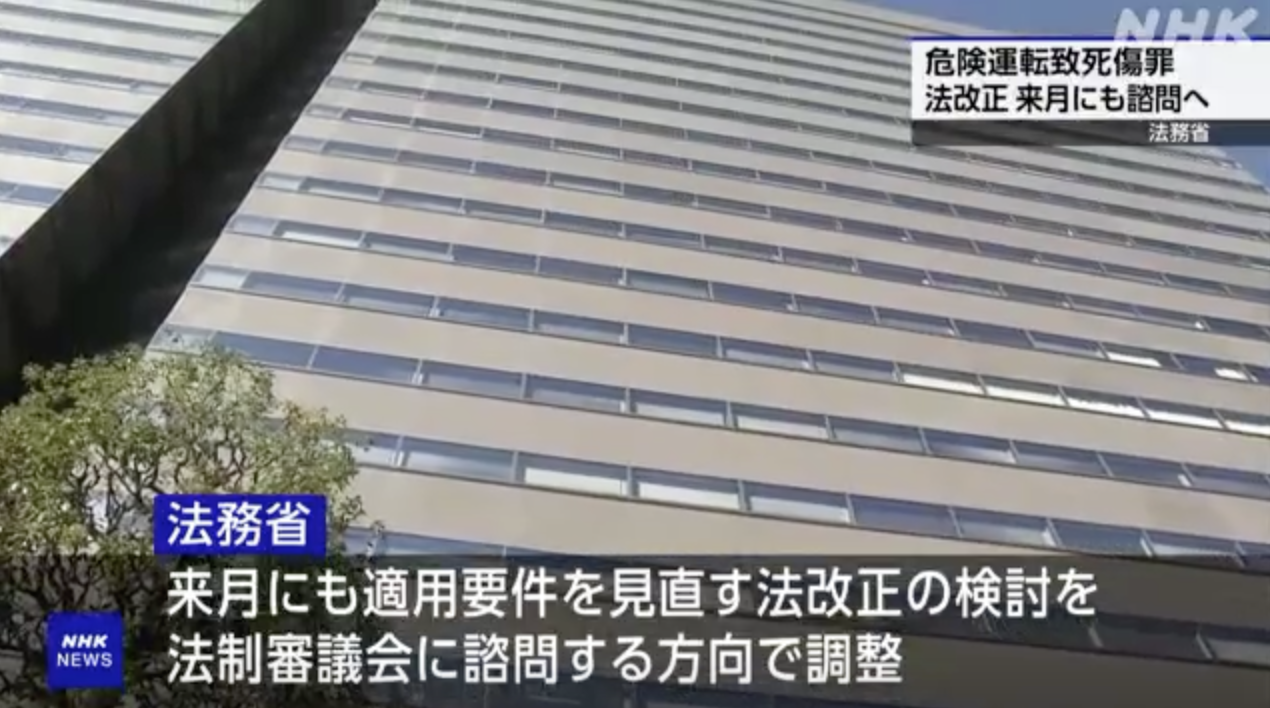 危険運転致死傷罪をめぐり、法務省は2月にも、適用要件を見直す法改正の検討を法制審議会に諮問する方向で調整しています。