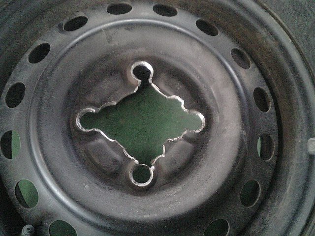 鉄チンホイールのディスクセンター割れてる初めて見た