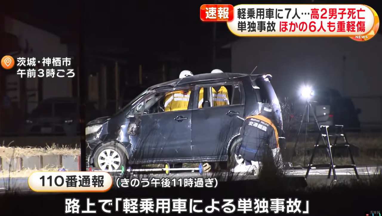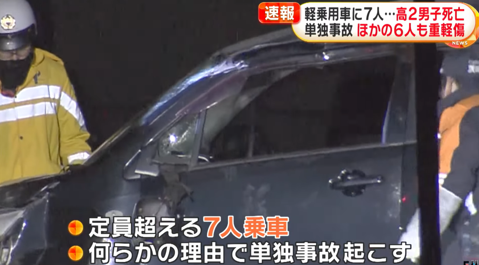 【事故】7人乗った軽自動車が横転、17歳男子高校生が死亡…