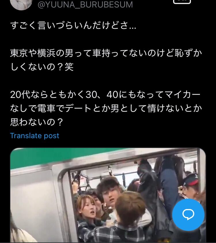 東京や横浜の男って車持ってないのけど恥ずかしくないの?笑