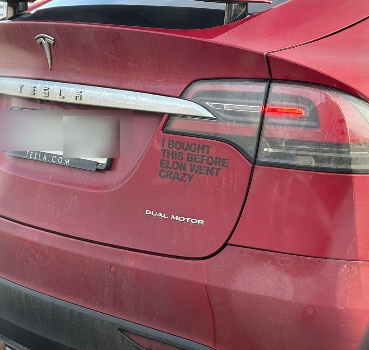 【悲報】テスラ車のオーナー、揃いも揃って馬鹿みたいなシールを貼ってしまう