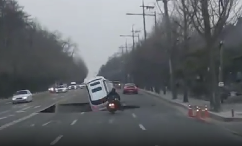 【悲報】韓国の道路陥没事故、怖すぎる