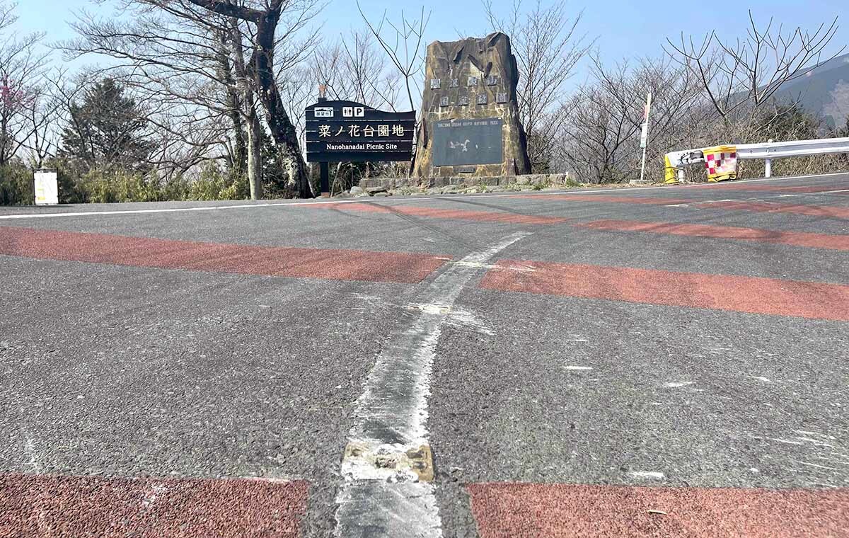 現場付近はドリフト走行によるガードレールなどの損壊が多いことから、同事務所が24日から25日夕にかけて道路鋲18基を設置した。鋲は縦横とも15センチ、高さ3センチ。同園地前のカーブで連続する6基が工具などで壊されたとみられ、うち5基が道路外に置かれていた。同事務所は市や警察との連携を強化し、パトロールや監視カメラによる監視体制を強化するという。