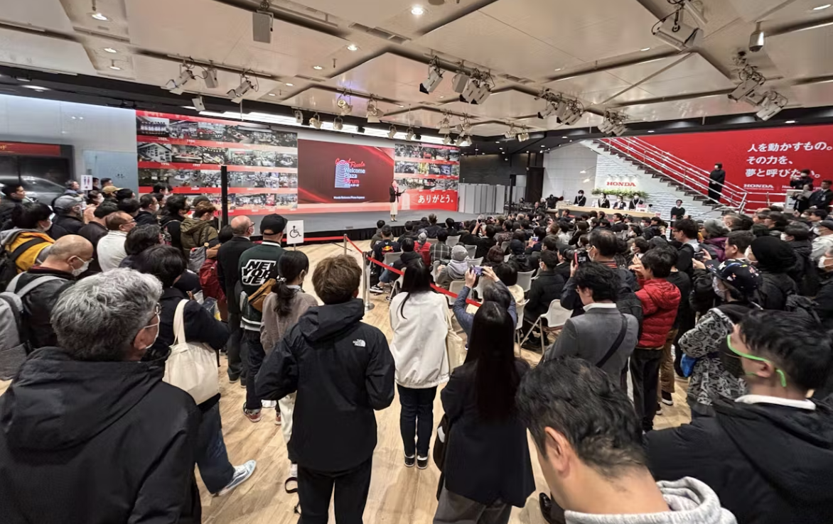 二輪や自動車の展示スペースがあるホンダ本社1階の「ウエルカムプラザ青山」では、同日午後7時30分まで休館に伴う催しが開かれた。レーシングドライバーの角田裕毅氏らのサイン入り色紙のプレゼント企画などで会場はにぎわった。