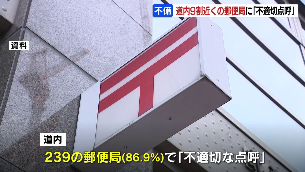 全国の郵便局で配達業務の点呼に法令違反の不備が相次いで発覚した問題で、北海道内では9割近くの郵便局で「不適切な点呼」が行われていたことが分かりました。