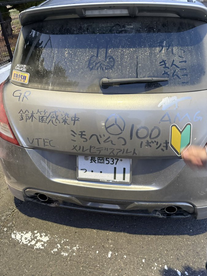 落書きが低レベルすぎるのは置いといて車汚すぎだろ