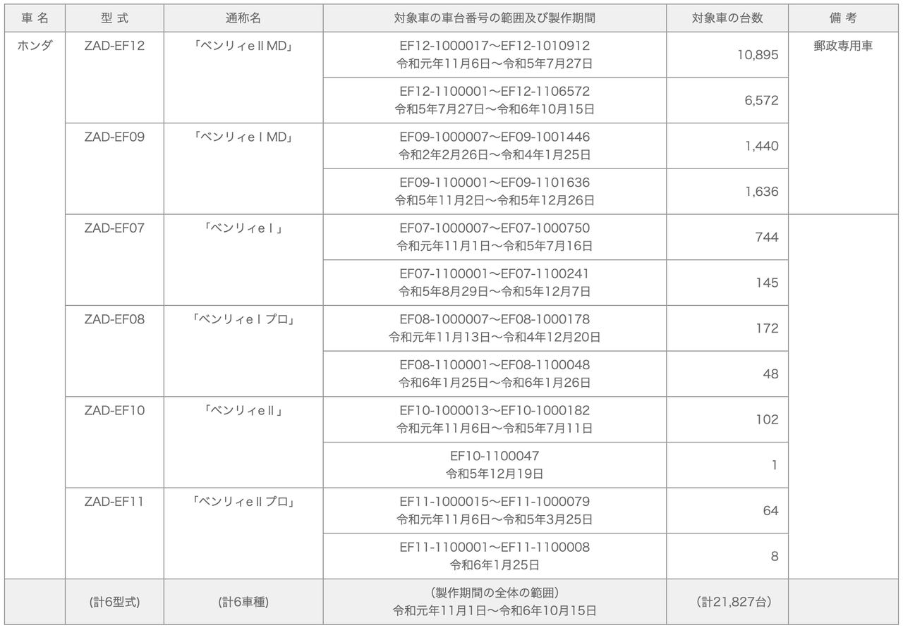 ホンダ「ベンリィeⅡMD」など6車種をリコール