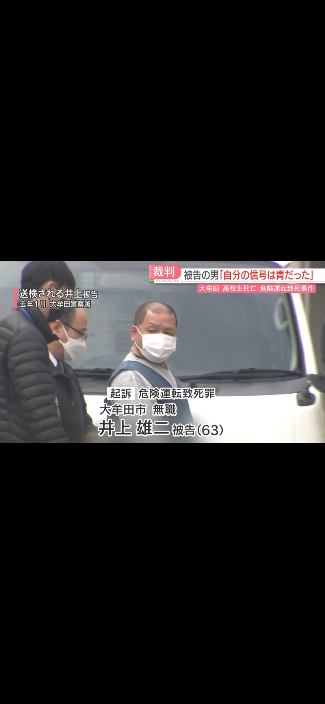 25日の被告人質問で、検察側が当時の信号の状況を尋ねると、「交差する車線に車が止まっていたので、自分の信号は青だったと思う」と述べました。また、事故当日の飲酒については、「朝6時まで飲んでいたが、事故があった午後9時まで酒は一滴も飲んでいない。なぜアルコールの数値が出たのか分からない」と述べ、改めて飲酒運転を否認しました。