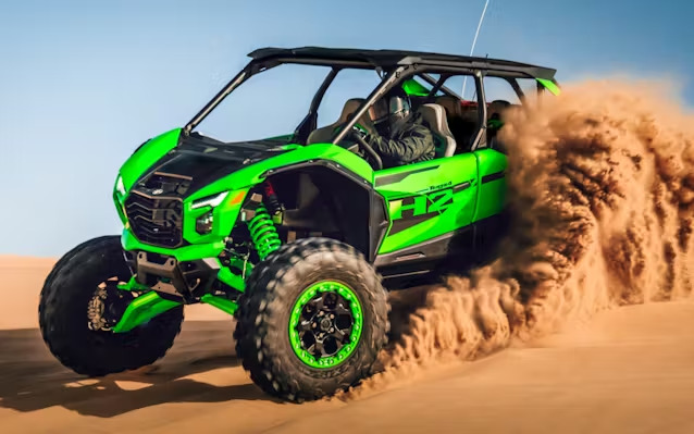 川崎重工業傘下のカワサキモータースは1日、二輪車「Ninja(ニンジャ) H2」用エンジンを改良して搭載したオフロード四輪車を販売すると発表した。米国を中心に8月以降、順次販売する。従来モデルに比べ、より力強い加速と速い走行を楽しめる。