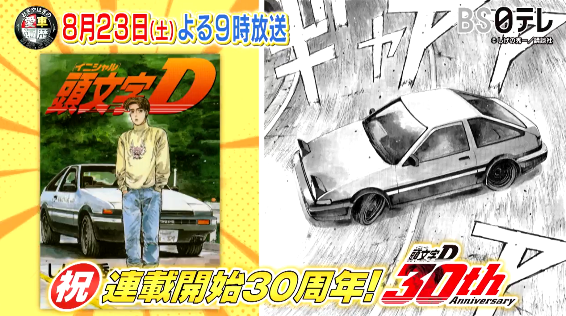 「愛車遍歴」が人気漫画「頭文字D」と奇跡のコラボ!8月23日放送!