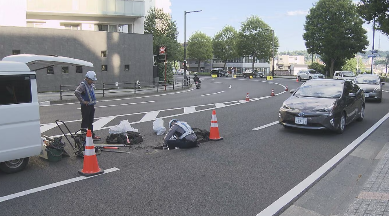 仙台市中心部の市道が陥没 縦60cm,横90cm,深さ60cm けが人なし 車線規制して復旧作業