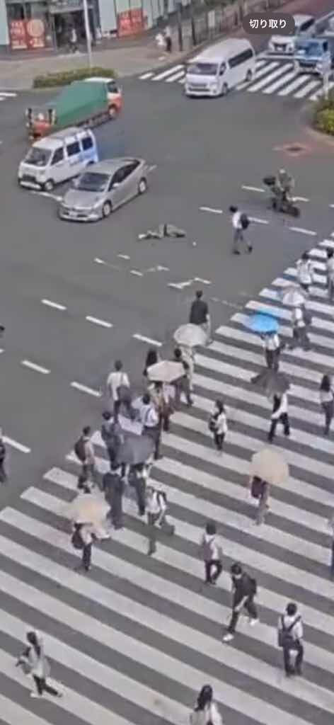 【事故の瞬間】新宿の交差点で信号無視する自転車 車にはねられる