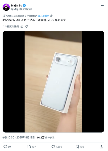 【朗報】iPhone 17 Air、良さそう 2025/8/16 マイカー速報 1: 2025/08/15(金) 15:20:53.93 ID:P9ahXH6C0 https://twitter.com/MajinBuOfficial/status/1955622947215024538 http://tekito.2ch.sc/test/read.cgi/livegalileo/1755238853/0- 続きを読む Source: マイカー速報