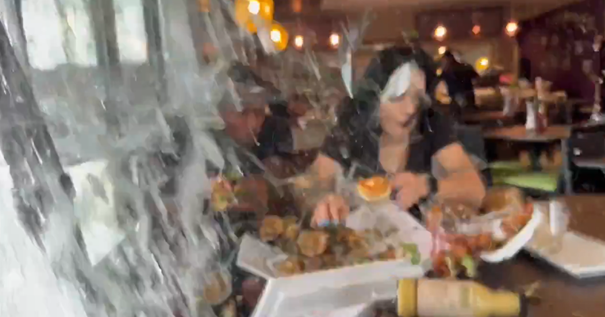Food influencers were hit by a car while reviewing a burger inside a restaurant pic.twitter.com/OD8pPGzxrp
