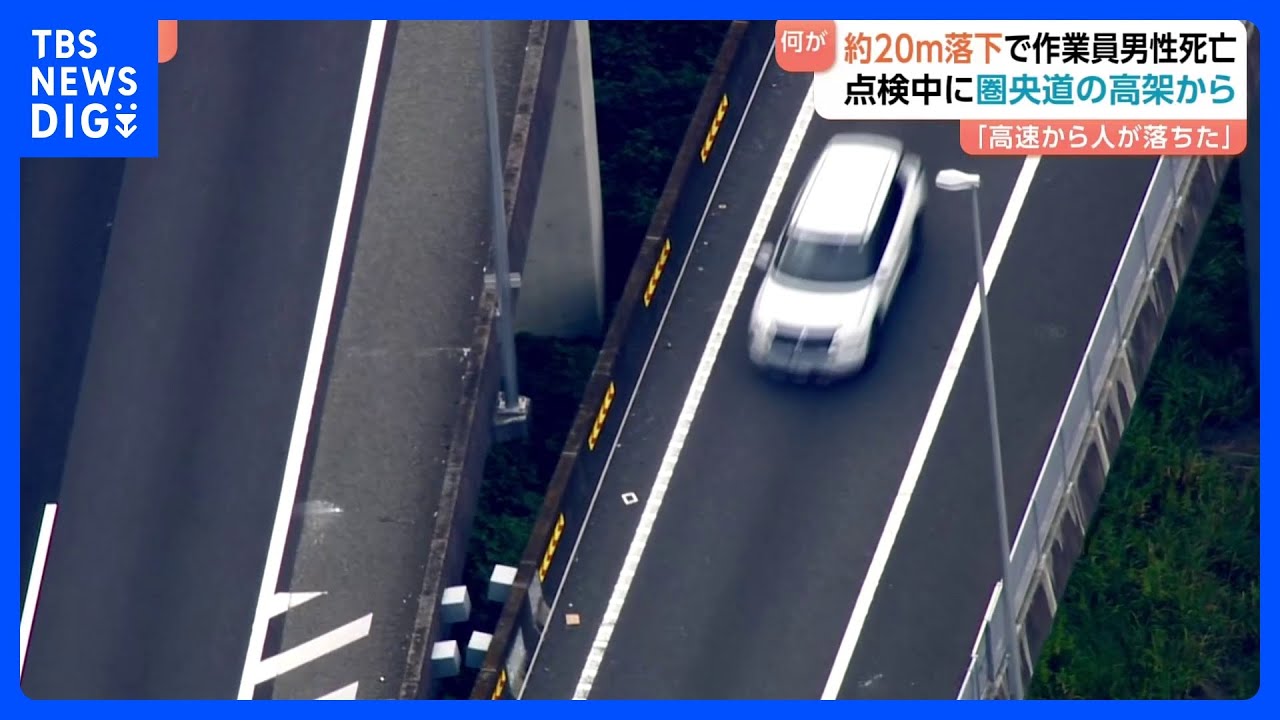 警察によりますと、高架になっている圏央道で、設備点検をしていた20代くらいの作業員の男性が、車線の合流地点の隙間から20メートルほど下に落下したということです。