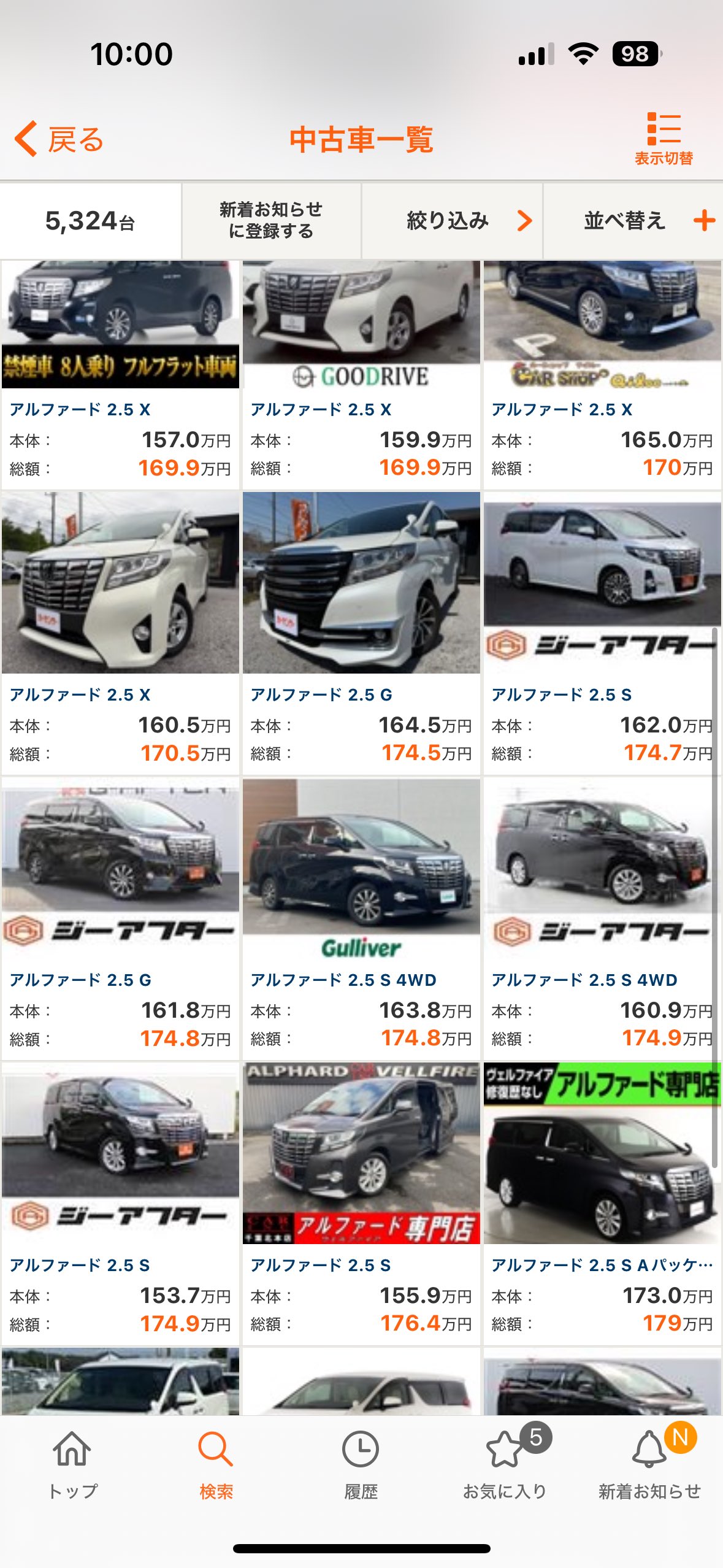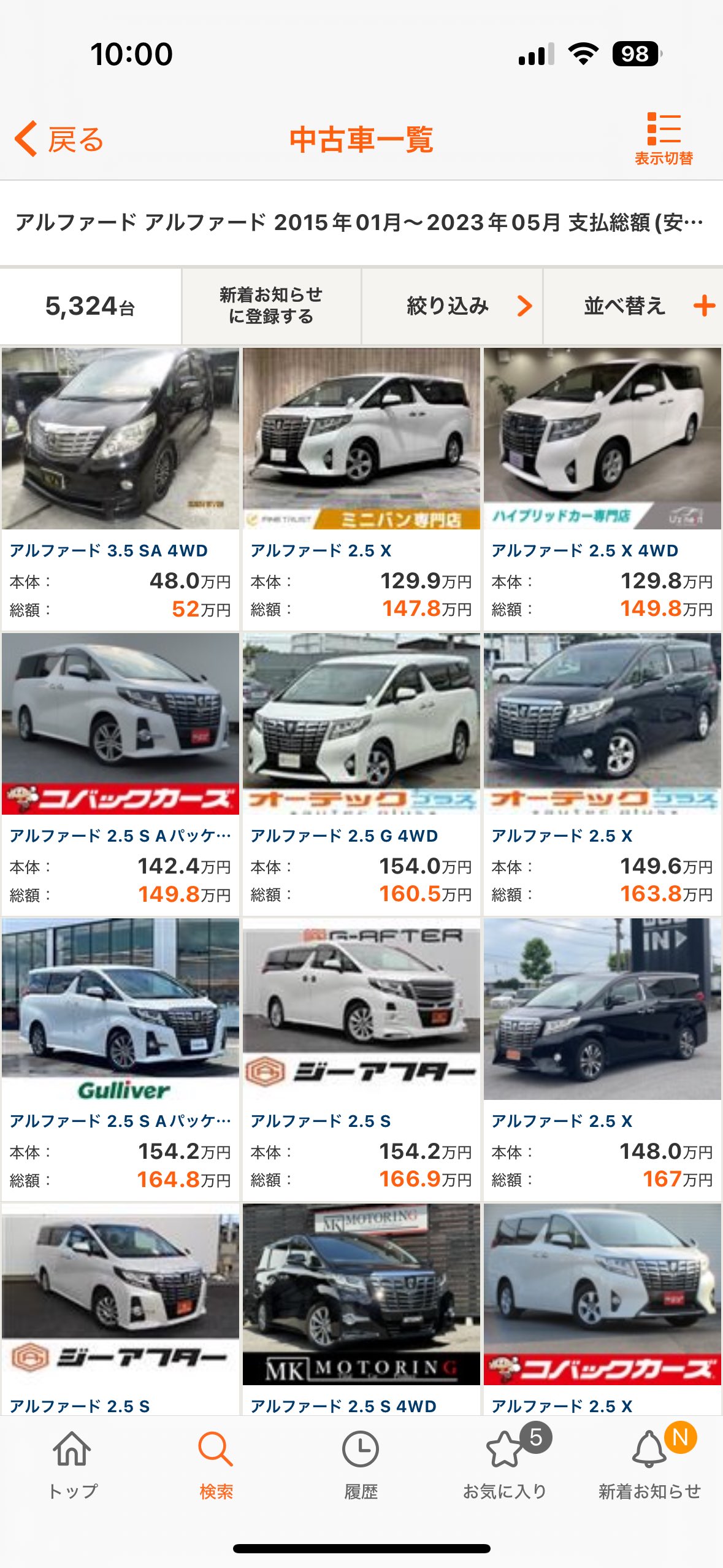 別に中古でもええんよ。今乗ってる車が200万円だったのに、アルファードが170万円とか欲しすぎる!