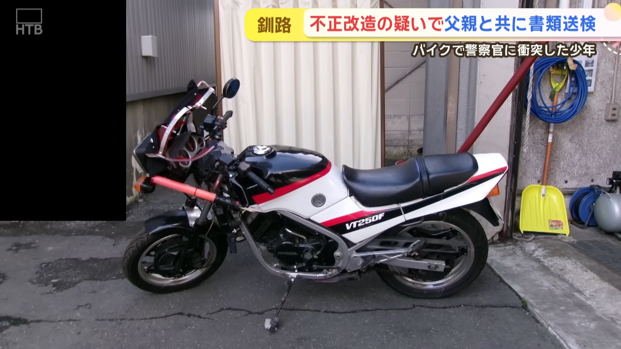 釧路市の会社員の少年16歳とその父親で会社員の男性49歳は7月、バイクのマフラーから排気音を静かにするサイレンサーを不正に取り外し鉄パイプを取り付けたなどとして4日、書類送検されました。