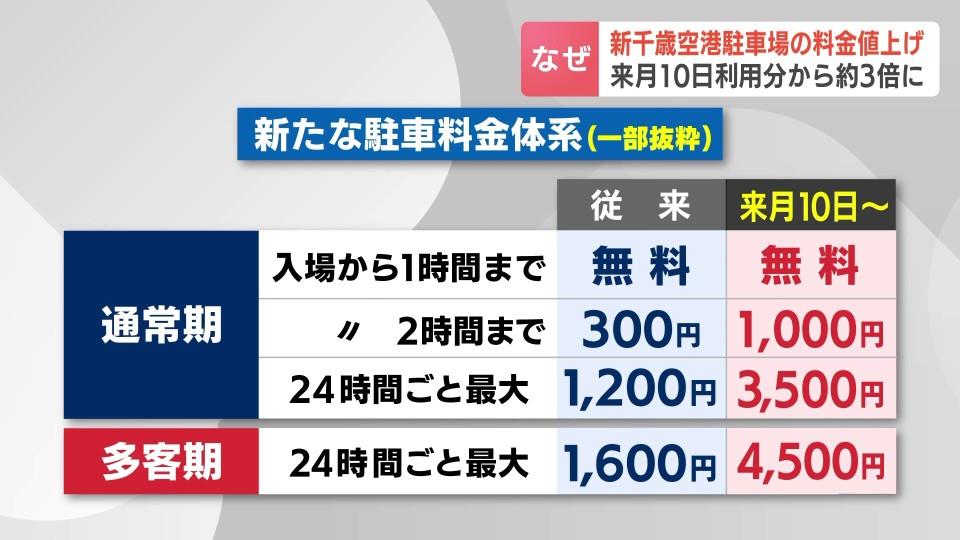 新千歳空港を管理・運営する北海道エアポートは、10月から空港の駐車場料金を24時間1200円を3500円に、一気に3倍に値上げすることを発表しました。