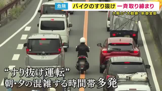 【大阪府吹田警察署・知見恭子交通課長代理】「すり抜け運転については、ほかの車との接触の可能性があり、危険な運転になります。しっかり安全運転を心がけて思いやりのある運転を宜しくお願いします」