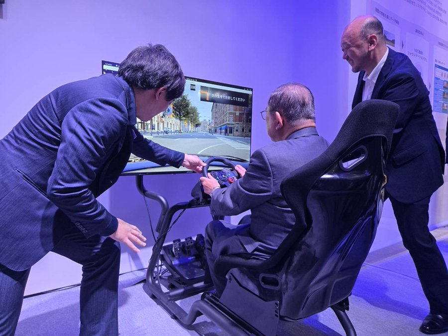 石破茂氏、NECのAI搭載ドライビングシミュレーターに挑戦