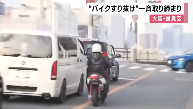 大阪市鶴見区でバイクによる”すり抜け運転”など危険な運転の一斉取り締まりが行われました。