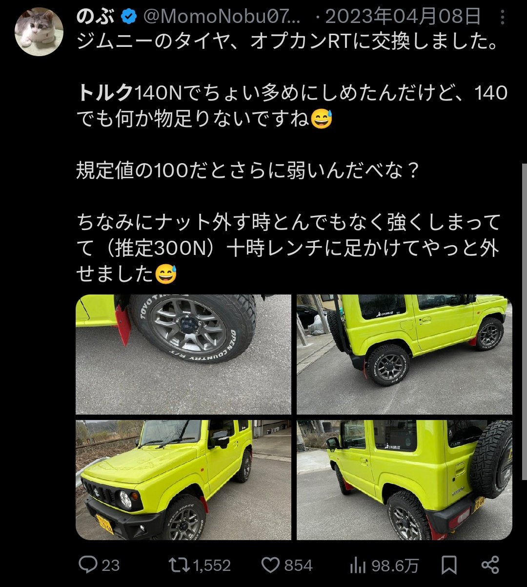 ジャッキアップ前に全車輪のホイールナット外してるやんけ https://t.co/CrfOiv3IZE pic.twitter.com/OpuA6B8Xns— ろいち (@RoichiD21) November 15, 2025