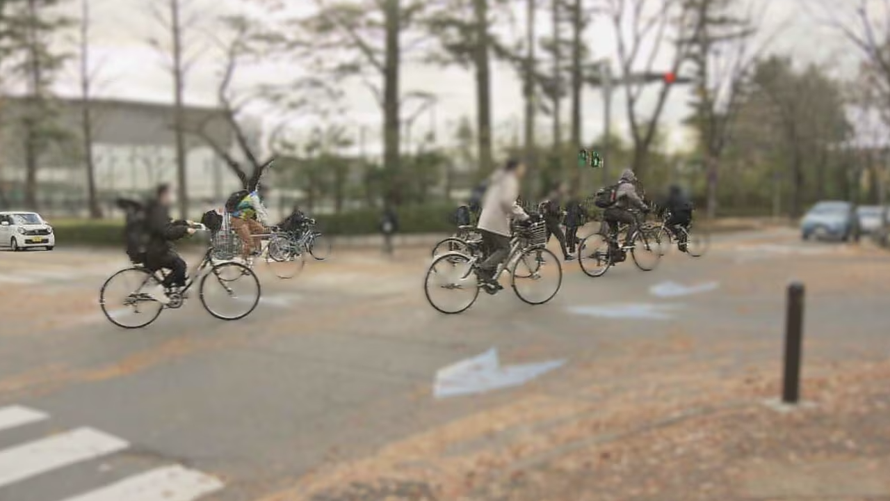 平日の午前7時半頃。信号機が青になると、歩行者と自転車が一斉に「斜め横断」を始めました。