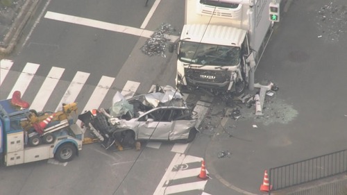 「トラックの運転席部分はつぶれ、乗用車は原型をとどめていません」