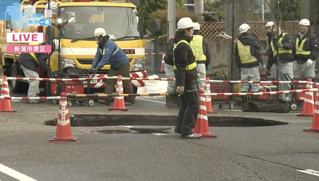新潟市によりますと、穴の大きさは5m×5mほど、深さは職員の目視で2,3mとみられます。