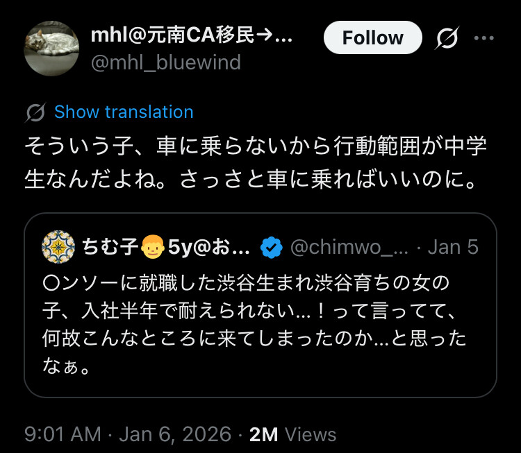 女性「なんで都民って車ないの?電車に縛られた行動範囲って中学生みたい」→都民発狂wwwwwwwwww