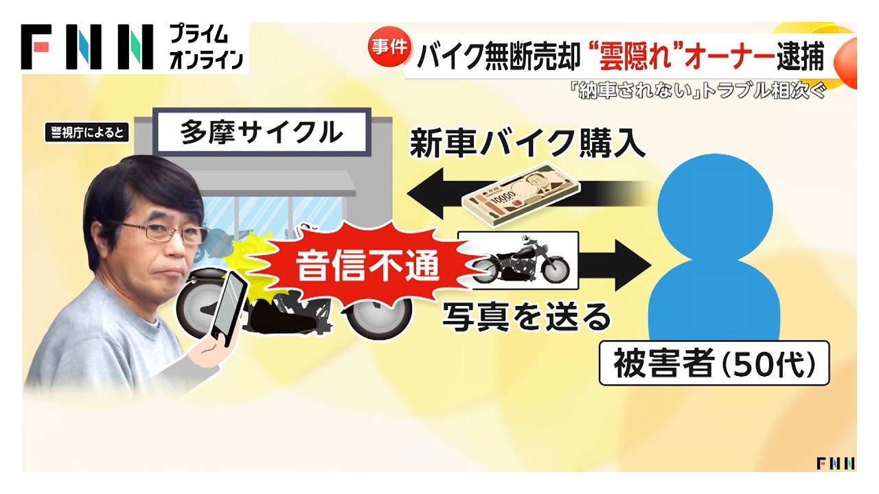 バイクショップのオーナーが、客が購入したバイクを無断で売却したとして逮捕されました。